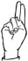 На ћирилици написано ЛАБУДА ВУЧИНИЋ састоји се из 13 слова [?]. Исписано ћириличном једноручном азбуком за глувонеме: